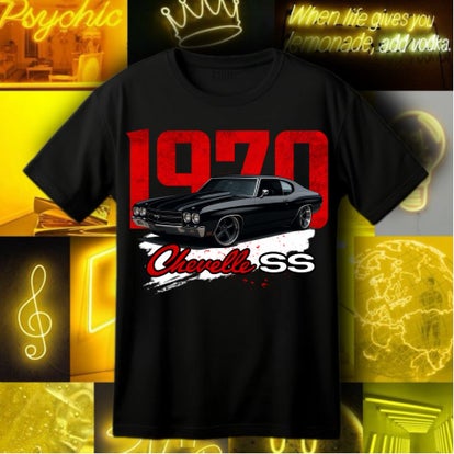 This classic 1970 Chevy Chevelle t-shirt exudes a vintage and rugged vibe, perfect for car enthusiasts and anyone who appreciates retro designs. Ideal for casual wear and occasions like vintage car shows or automotive events.