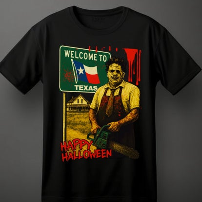 Horror Halloween Tees with all the Classic Horror Flick Superstars! Rock your Welcome To Texas Tee with pride!